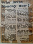 Successfully badgered my uncle who worked at News of the World to source copies of the original Brenda Spencer article. Kept those and also the Daily Mirror spread entitled 'I Do Like Tuesdays' when Cliff Richard eventually toppled Mondays, which I'm sure was a reference to fact chart rundown (well official Radio 1 BRMB chart anyway) was announced on Tuesdays. Can't honestly recall if there was a separate top 40 rundown (non Radio 1?) on Sundays at this time, but will concede to Joan's younger and fresher memory .