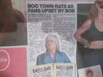 Gripes have been about swearing at family festival and the insults he throws at the audience. They take it all seriously and think it's his ego. They also insist he's high on something and if he isn't that's even worse. They are calling him Nob Geldof!! They also say the Rats are crap. That's a matter of personal opinion, I'm entitled to mine as they are, but these people don't get that either *bangs head against brick wall and gives up*.